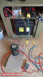 Those of you who have read my June 2015 post about the mobile battery cart will remember the Deka marine battery and the unpainted plywood lid. Since then I have painted the lid to match the rest of the unit and have replaced the Deka battery with two new 6 volt/220 ampere-hour golf cart batteries, purchased from the battery company I work for part-time. The batteries are both contained in ABS battery boxes so they are out of sight and any leakage that might occur will be contained. Having the batteries NOT readily visible is important, lest my landlord or, in the event of some emergency - firemen or EMTs, see them and get upset. Given the way this unit is constructed, it looks clean, organized and purposeful. One would NOT walk up to this and say "why do you have car batteries in your house?" Yes, it's clearly some sort of electrical device, BUT it's NOT scary looking.
